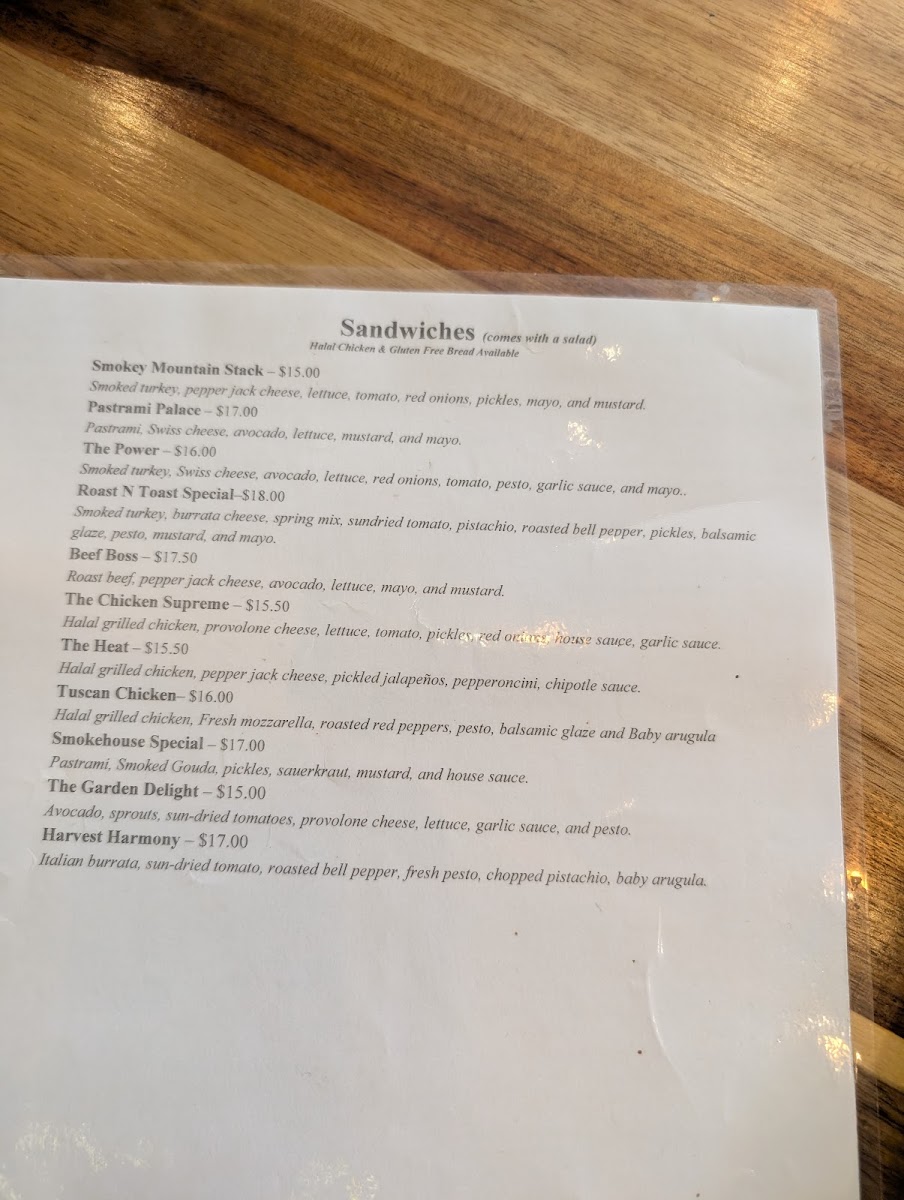 Roast&Toast Cafe Menu